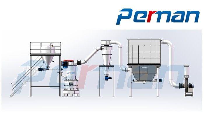 (2)高細度:配備自分流高濃相分級系統(tǒng),粉碎粒度在D50=5~15um可調(diào)。